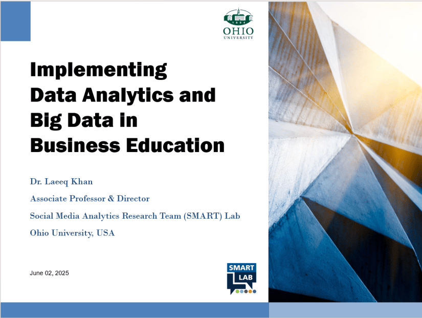 - Contributing to the Data Science BSc program at Ohio University, where I currently serve as Associate Professor and Director of the SMART Lab, focusing on social media analytics, digital strategy, and experiential learning.